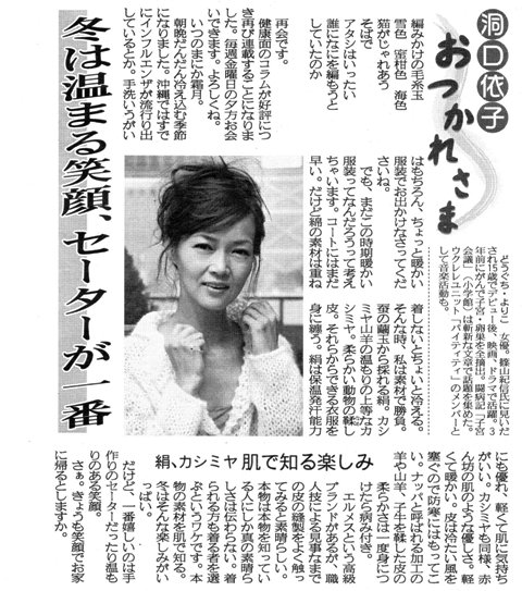 夕刊フジ連載(毎金曜日) 洞口依子 「おつかれさま」season2! 第1回(2007/11/9) 第2回(2007/11/16) ↓「おつかれさま」season2↓ 第3回、第4回 第5、6回 第7、8回 第9、10回 第11、12回 第13、14回 (第15、16回)へ (第17、18回)へ (第19、20回)へ (第21、22回)へ (第23、24回)へ (第25、26回)へ (第27,28回)へ (第29、30回)へ (第31、32回)へ (第33、34回)へ (第35、36回)へ (第37、38回)へ (第39、40回)へ (第41、42回)へ (第43、44回)へ (第45、46回)へ (第47、48回)へ (第49、50回)へ (第51回)へ ↓「おつかれさま」season1の連載はこちらです↓